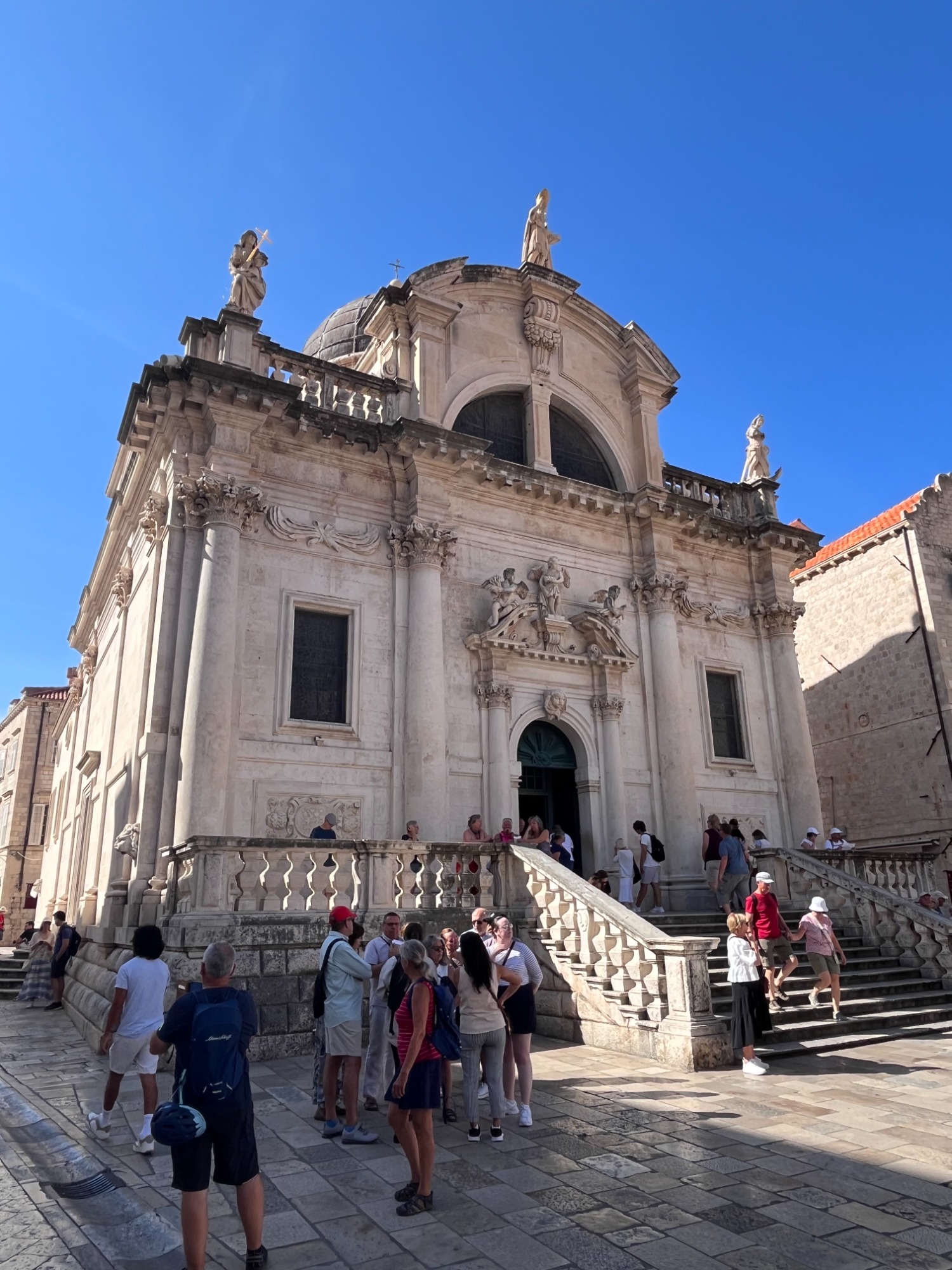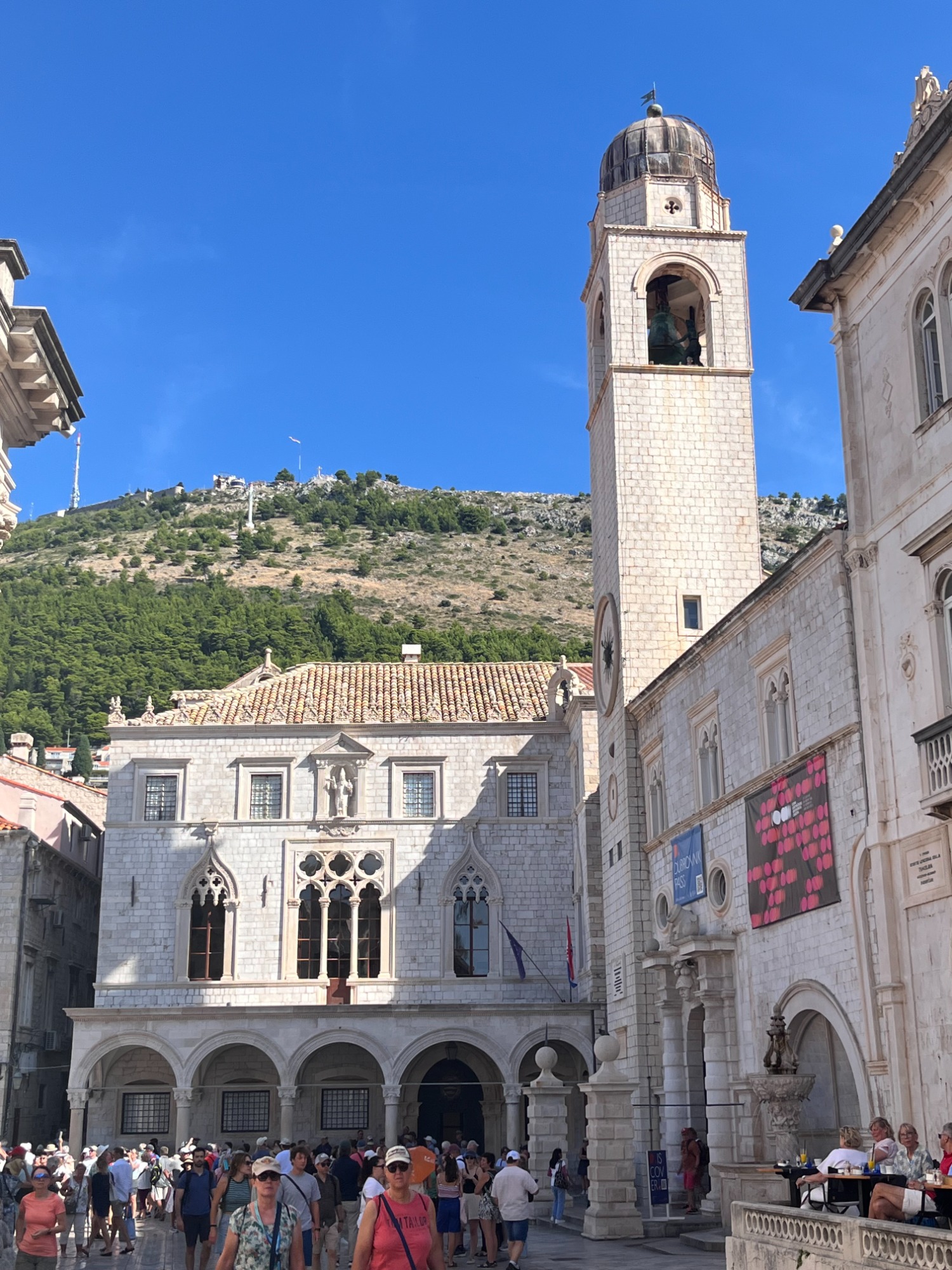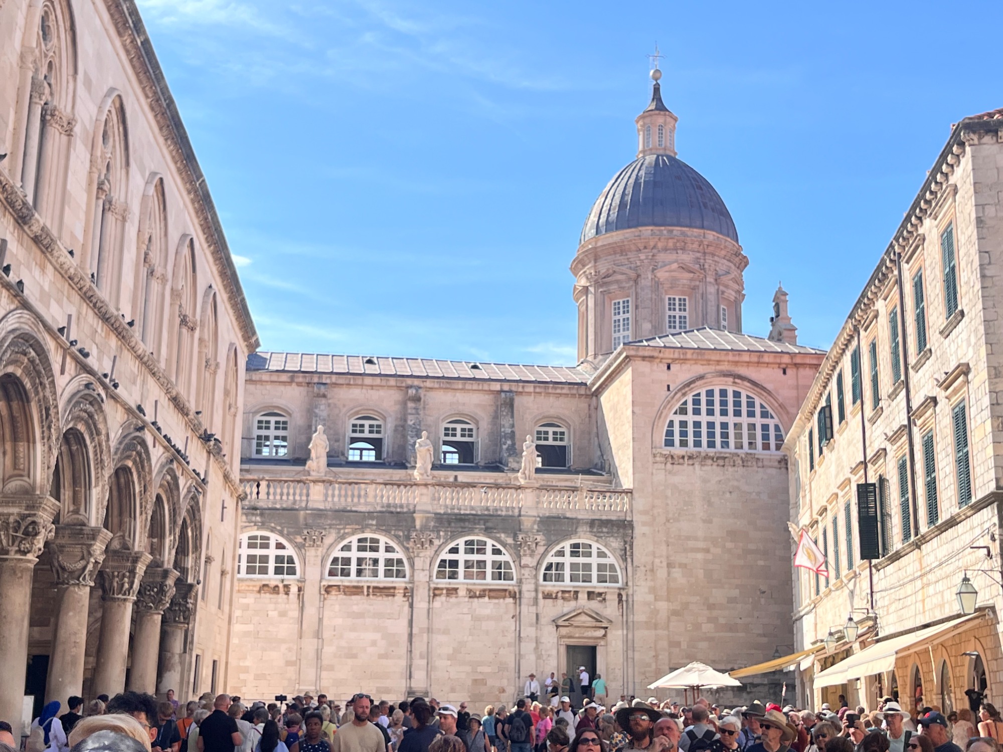 Nachdem wir Bari zu einem Ruhetag erklärten und nicht von Bord gingen, stand der nächste Ausflug im südkroatischen Dubrovnik an. Zunächst fuhren wir mit der Seilbahn auf den Hausberg Srđ, von wo man die gesamte Stadt überblicken konnte. Des Weiteren ist von dem dortigen Aussichtspunkt ein hervorragender Blick ins Dreiländereck mit Montenegro und Bosnien & Herzegowina möglich. Nach unserer Ankunft im Tal, ging es auf einen geführten Stadtrundgang in die völlig überfüllte Altstadt von Dubrovnik.