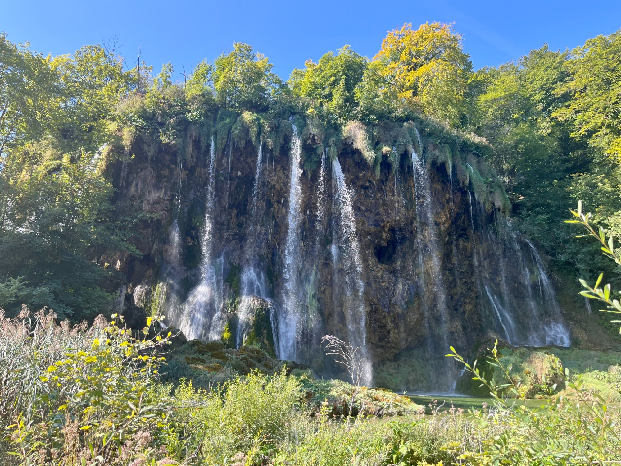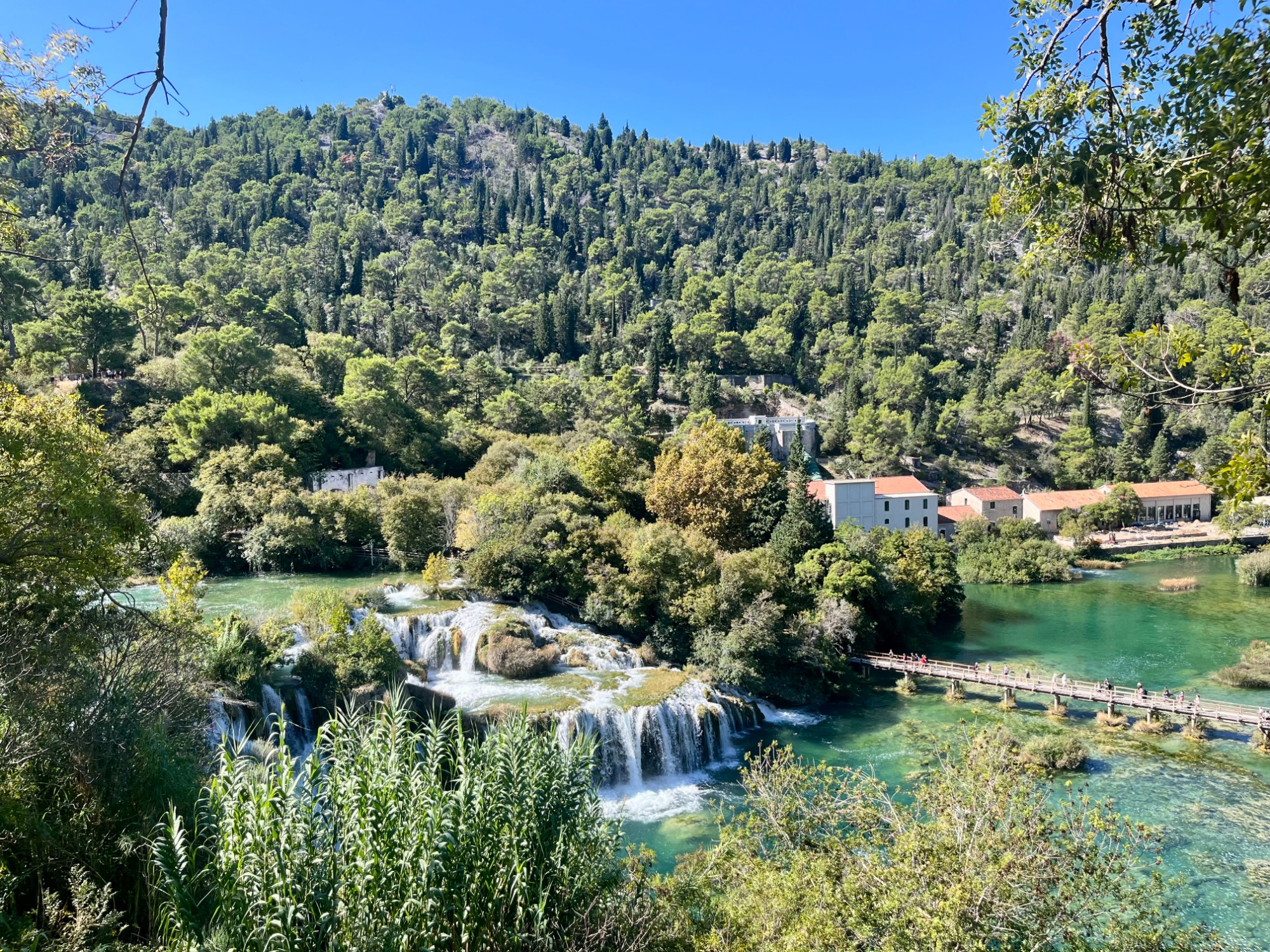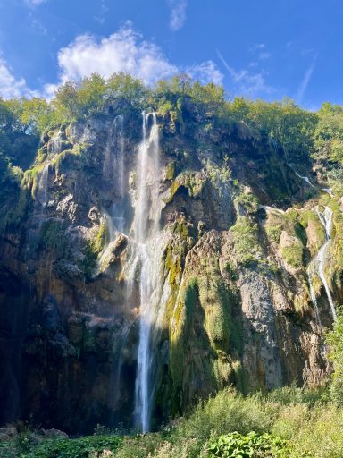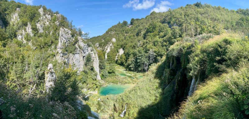 Mit dem Hafen in Zadar erreichten wir nun erstmals kroatisches Staatsgebiet. Von dort aus fuhren wir in die Bergregion des Hinterlandes, nahe zur Grenze mit Bosnien & Herzegowina. Dort liegt der Nationalpark Plitvicer Seen, den wir im Folgenden besuchten. Auf einem unebenen Holzsteg mit vielen unübersichtlichen Stufen konnte man die dicht bewachsene Natur tiefgründig erleben und das klare, türkisfarbene Wasser betrachten. Vielerorts kreuzten größere und kleinere Wasserfälle unseren Weg.