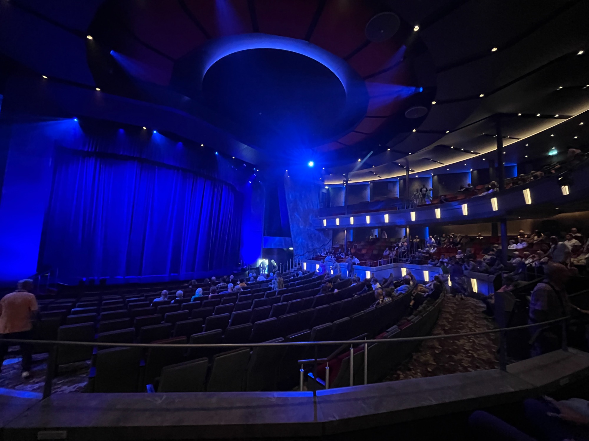 Mit dem umfangreichen Bordprogramm war man nahezu jederzeit bestens versorgt. Vor allem die großen Shows im Theater waren sehenswert. Besonders herausragend war das sogenannte "Spooktakel", eine schaurige Horror-Show mit dem Conférencier Tobias Roloff und dem vierköpfigen Tanz-Ensemble des Schiffes. Besonders Tobias Roloff ist exzessiv zu loben, denn sein schauspielerisches Talent perfektionierte die Show. Auch seine beiden Lesungen waren über die Maße unterhaltsam und sehenswert.
