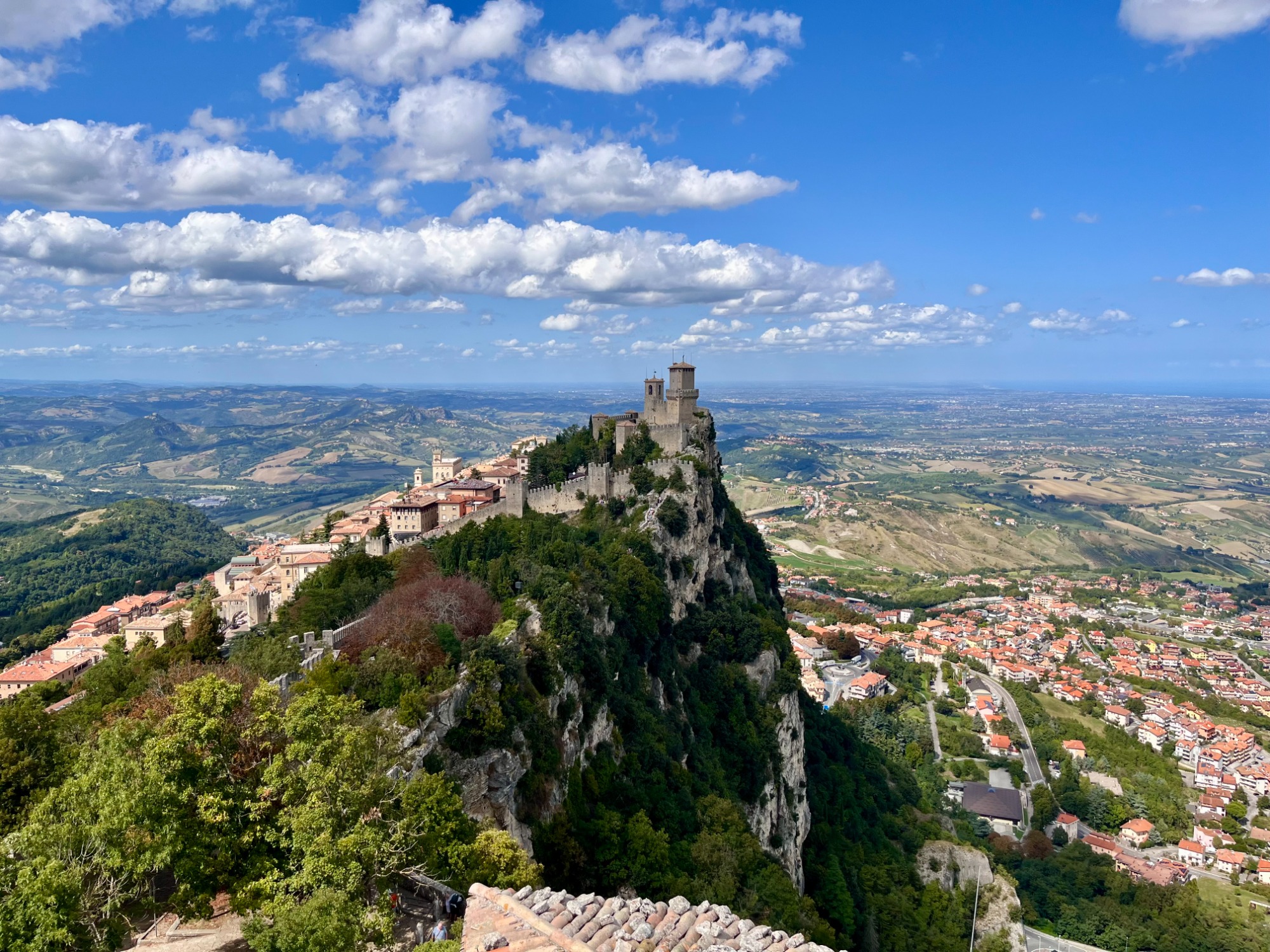 Vom nächsten Hafen in Ravenna aus, reisten wir nach San Marino, ein besonders spektakuläres Reiseziel mit einer besonders beeindruckenden Altstadt. Nach einer ausgiebigen Führung durch die Altstadt mit unserem Guide, hatten wir in unserer frei verfügbaren Zeit noch ausreichend Gelegenheit, die zwei typischen Sehenswürdigkeiten "Torre 1" und "Torre 2" zu besichtigen. Diese thronen über der Stadt, sodass man von dort aus einen spektakulären Ausblick über das angrenzende Flachland Italiens bis nach Rimini genießen kann.