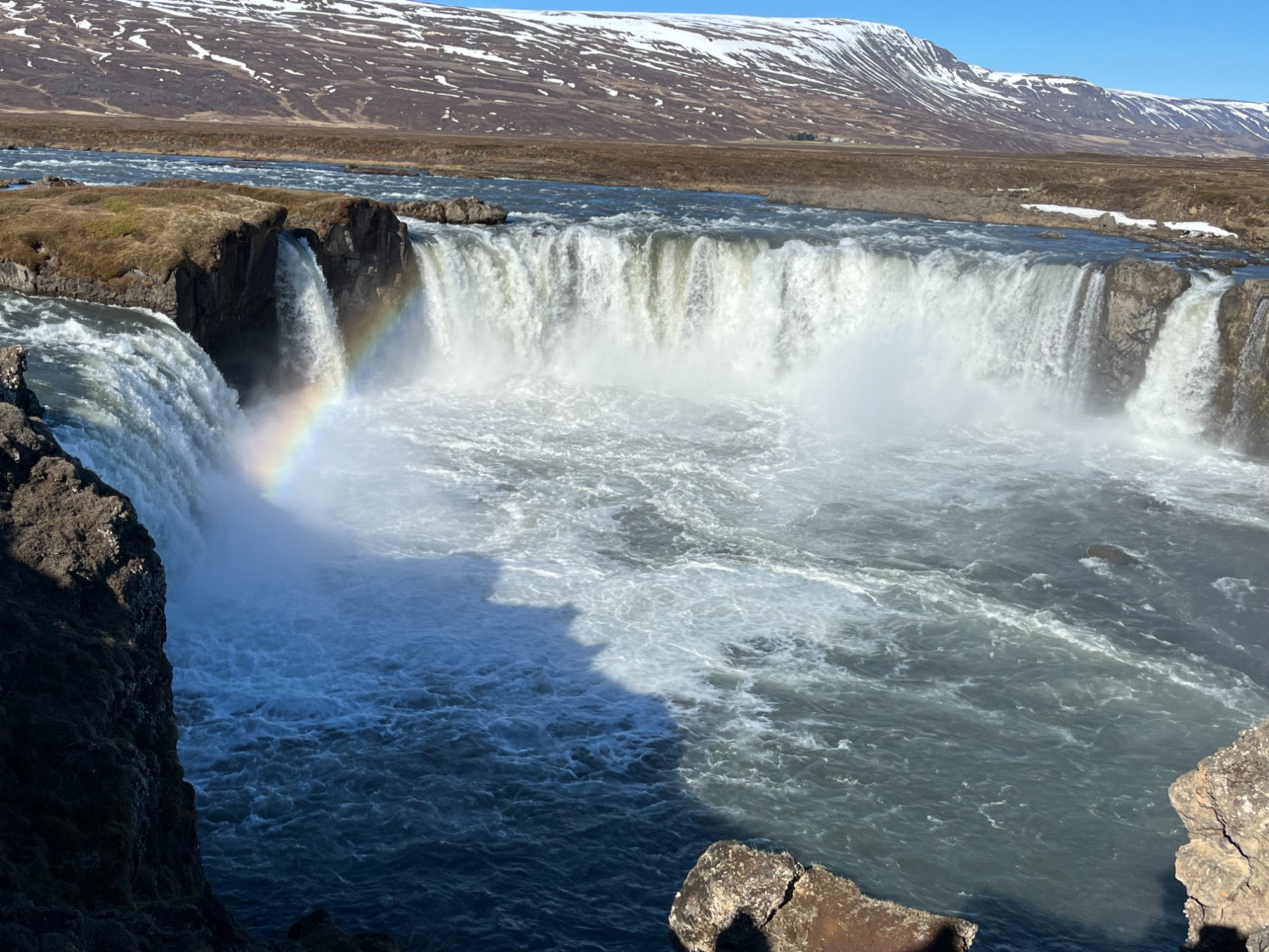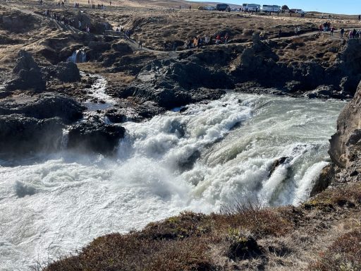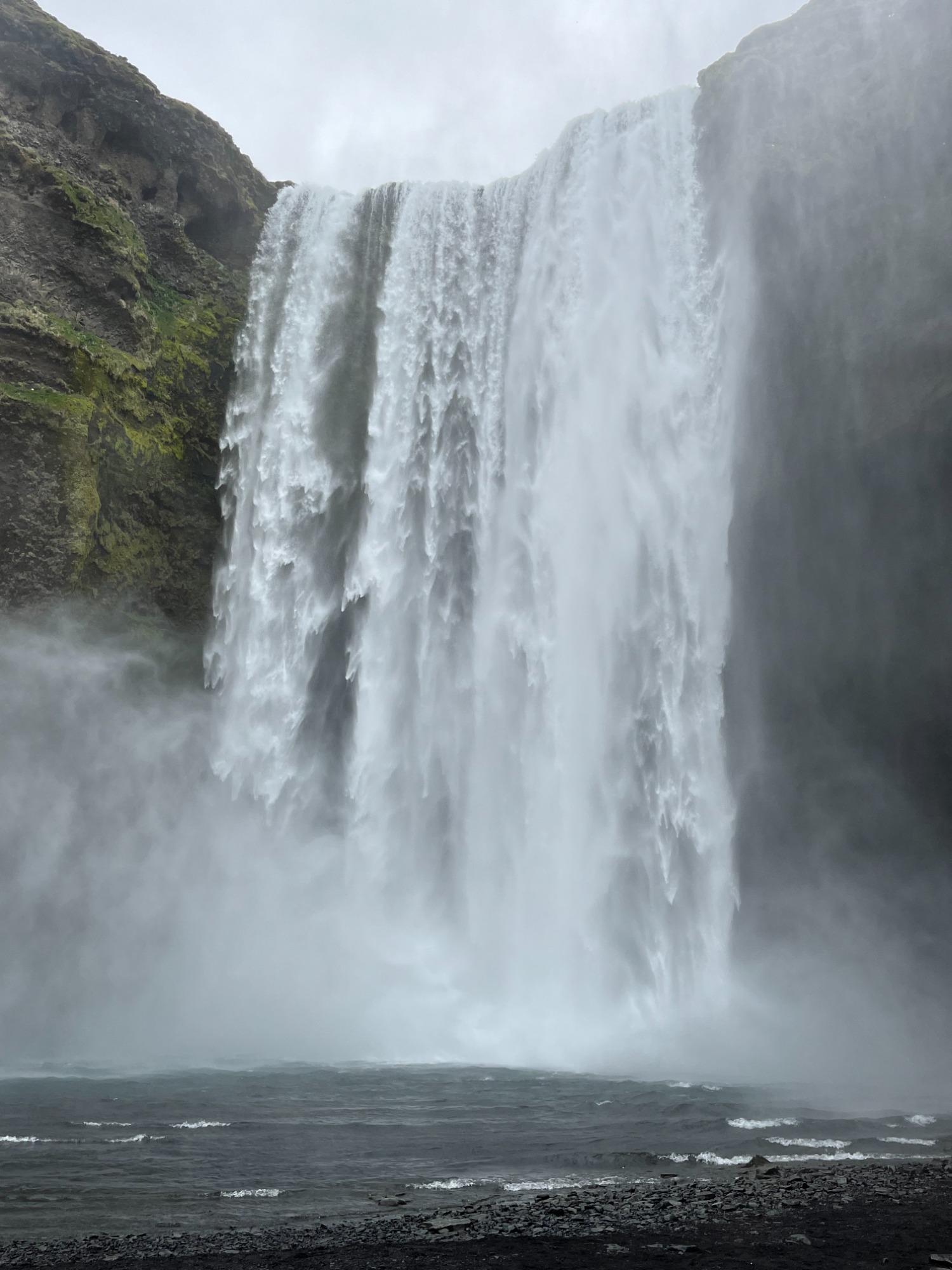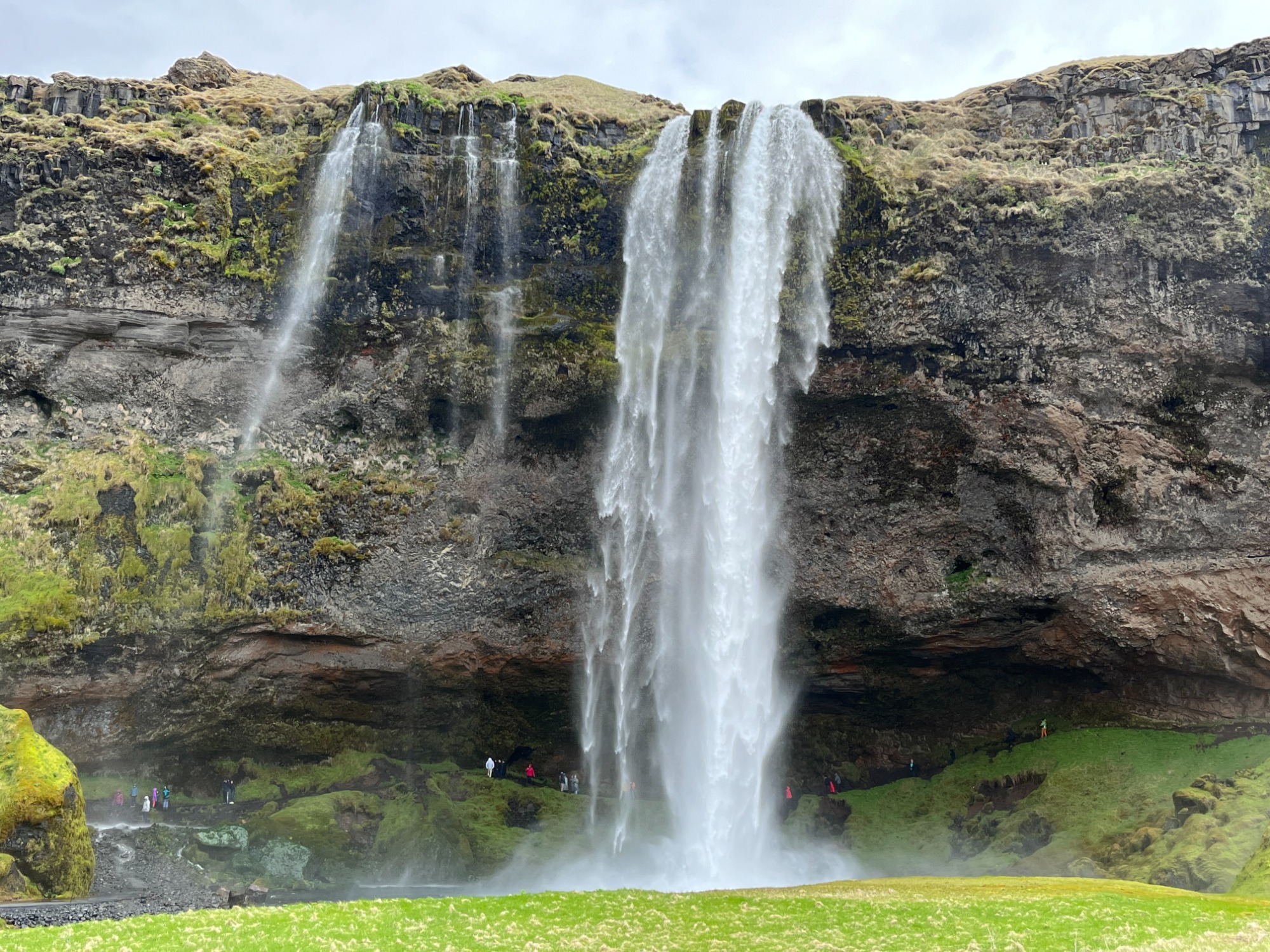 An unserem zweiten Tag in Reykjavík begaben sich meine Eltern und ich auf eine deutlich längere Tour zur Besichtigung des isländischen Südens, das Gebiet rund um den Vulkan Eyjafjallajökull. Während unserer Busfahrt durchquerten wir die einzigartige isländische Landschaft, viele dampfende Quellen sowie den Vulkan Hekla. Unser erster Stopp führte uns ins kleine Dorf Skógar, welches lediglich 25 Einwohner*innen fasst. Von dort aus war es ein kurzer Weg bis zum spektakulären Skógafoss, welchen man einerseits von unten, aber auch nach einem langen Aufstieg über unzählige Treppenstufen von oben, bestaunen konnte. Im Anschluss hielt sich die Reisegruppe im Museum des Dorfes Skógar auf, wo kleine, traditionelle Häuser und Fischerboote besichtigt werden konnten. Unser zweiter Stopp führte uns zum nächsten Wasserfall, dem Seljalandsfoss. Über einen schmalen, abenteuerlichen Weg konnte man sogar hinter ihn laufen.