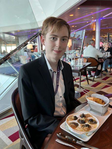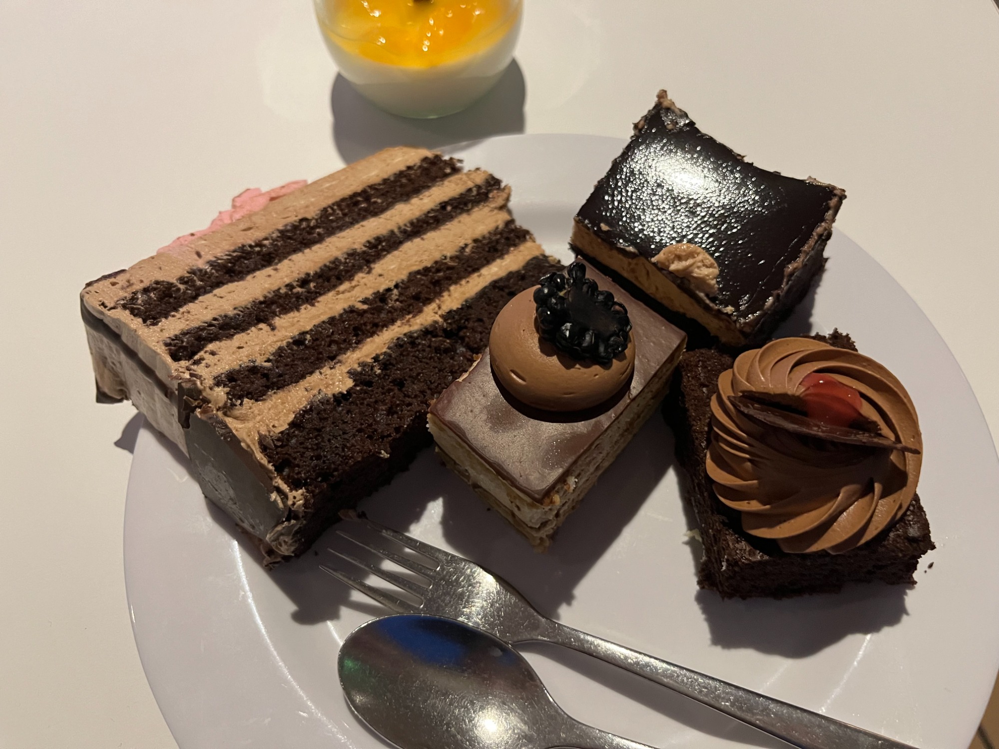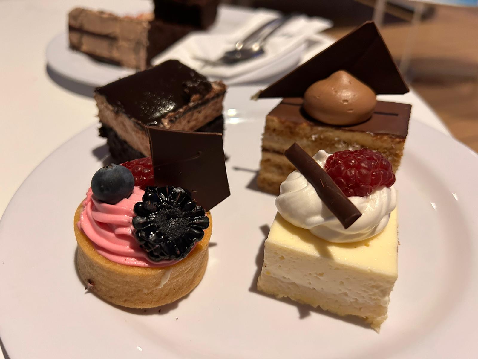 An den Seetagen sind die zahlreichen Angebote auf dem Schiff von großer Bedeutung. So besuchten wir an fast jedem Tag die Abendshow im Theater, wo Gesang, Tanz und Akrobatik zu sehen waren. Außerdem erfreuten wir uns sehr über die zwei Auftritte des Anwalts Stephan Lucas, der bereits häufig in den Gerichtsshows von Richter Alexander Hold und Ulrich Wetzel auftrat und somit als echter "Bord-Promi" bezeichnet werden kann. Neben dem Entertainment-Programm wird auch kulinarisch ausgezeichnet für einen gesorgt. Als Suitengäste hatten wir beispielsweise Zugang zur X Lounge, wo wir gelegentlich speisten. Zudem aßen wir in allen drei Spezialitäten-Restaurants sowie sehr häufig in den beiden Atlantik-Restaurants und im Buffet-Restaurant. Ein großes Highlight war die Feier zur Überquerung des nördlichen Polarkreises, als ein riesiges Dessert-Buffet an Deck aufgebaut wurde.