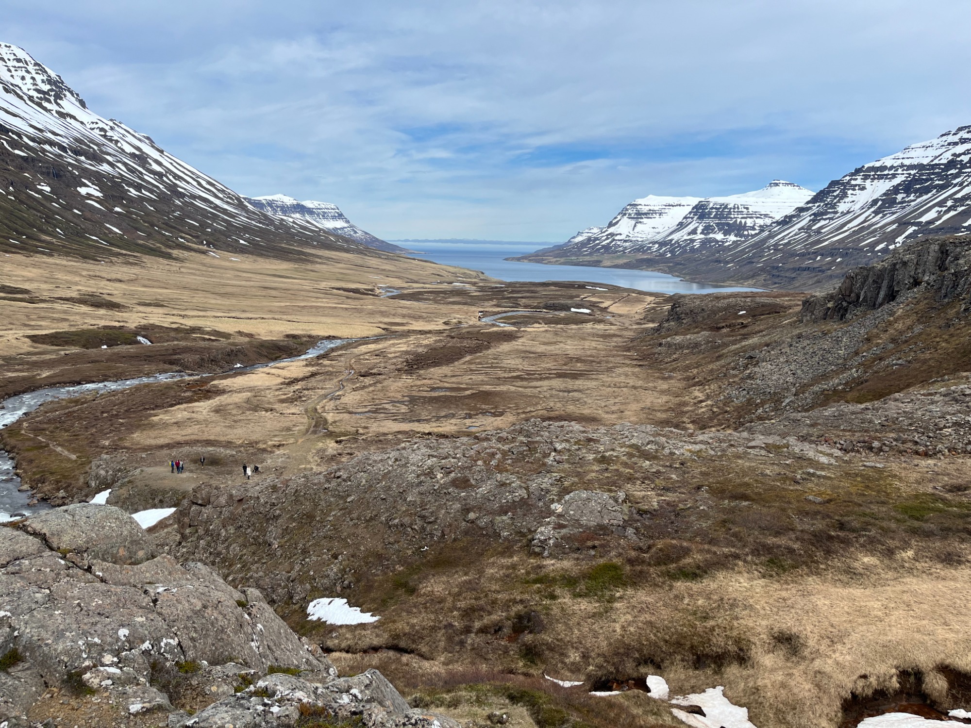 Am finalen Highlight der Tour, einem schönen Aussichtspunkt auf einem riesigen Gesteinsfelsen, bot sich die Gelegenheit eines 360°-Rundumblicks über die gesamte Gegend, mit hervorragendem Blick auf das durch Gletscher geformte U-Tal, an dem Seyðisfjörður liegt.